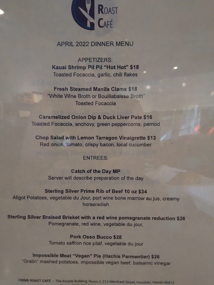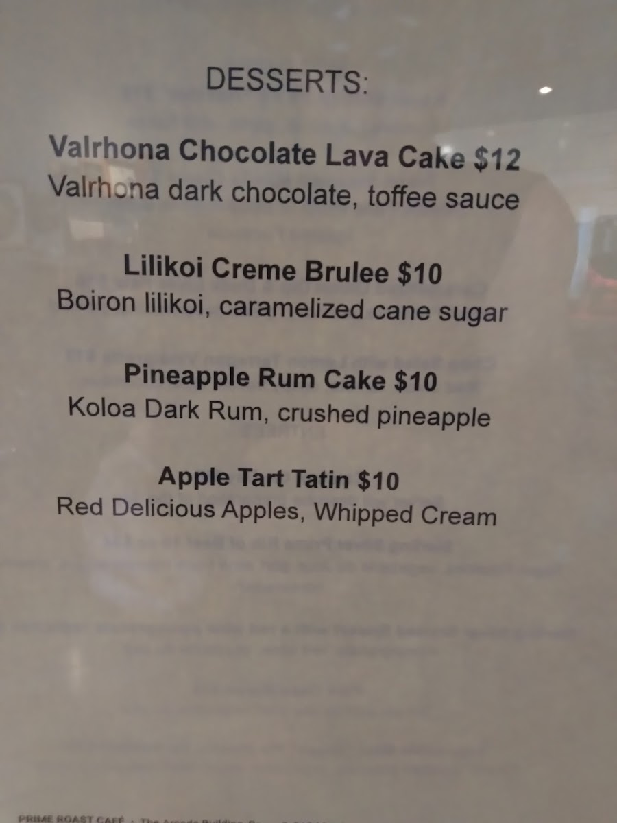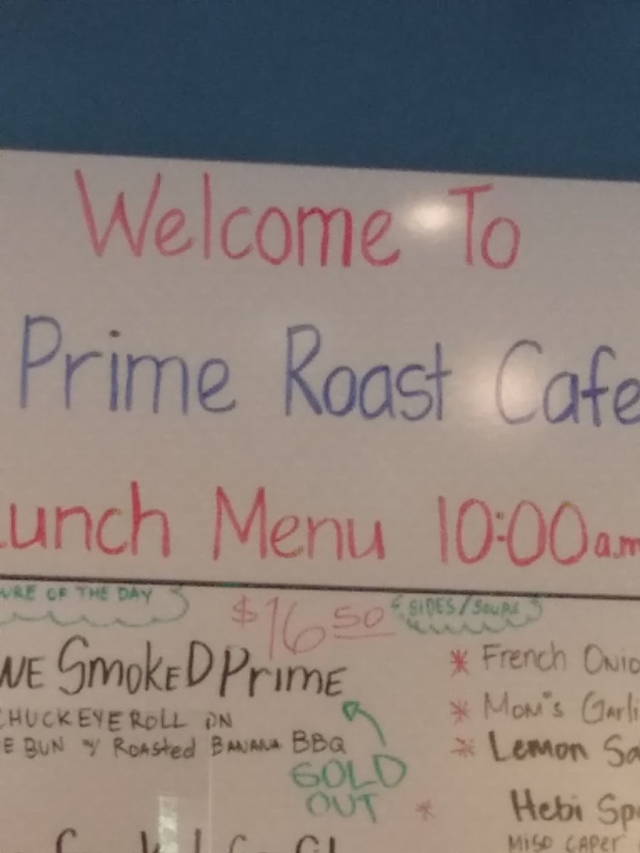 Prime Roast Cafe Menu